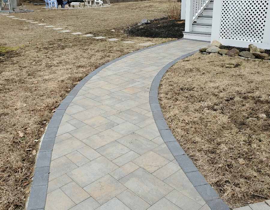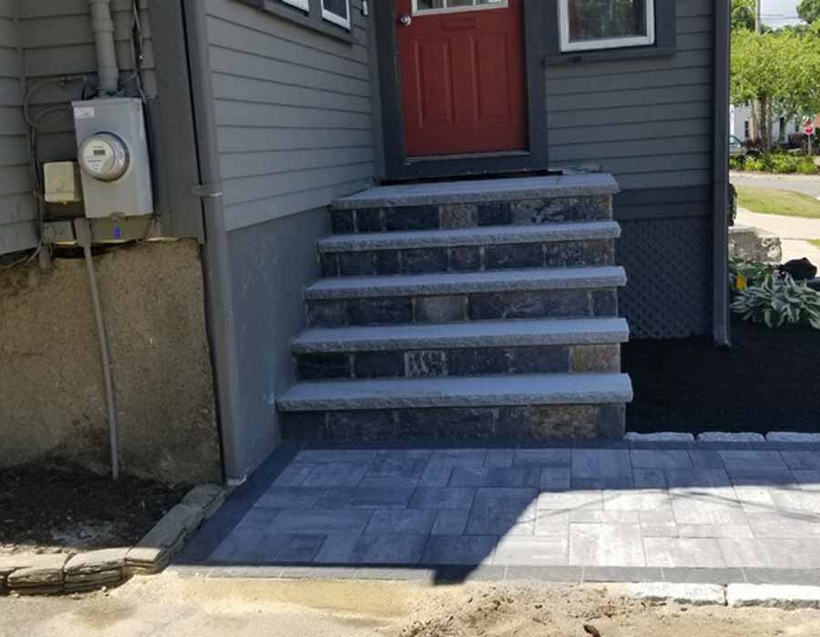 Concrete and brick walkway and stairs built for one of our clients near Peabody Massachusetts
